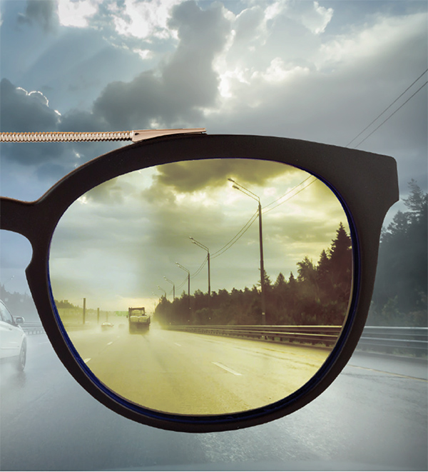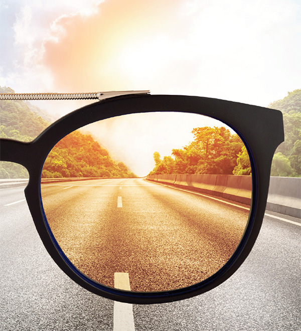 Transitions® Drivewear® adaptive sun lenses were designed to meet the unique visual challenges of daytime driving. A high-efficiency polarizer blocks blinding glare both outdoors and behind the windshield, for a safer and more comfortable drive. The color and darkness of the lens continuously adapts to optimize color contrast in changing daylight conditions, even behind the windshield. Transitions® Drivewear® sun lenses block 100% of UVA and UVB, and are the only lenses that combine NuPolar® polarizing technology and Transitions® photochromic technology.